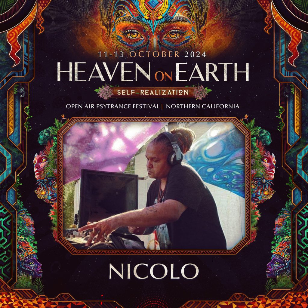 Nicolo is aio key contributing creative to Californian arts and music culture. From his youth, he dedicated his heart and mind to a myriad of aspects in music and event production. As a special effects artist in his youth, he found an intrigue for haunted attractions, scenic work and production deisgn. He honed these skills to be used for behind the scenes production and design of both environments as well as events, and pioneered a record label and a long-standing event culture in the Bay Area. Working under many different monikers, he has brought his forest and deep psychedelic sounds to dancefloors around the bay area, and from 2005, spread his and other artist’s sounds farther through his record label Psybertribe Records. Now his reputation of successful gatherings such as the monthly R3V!v@L gathering in Santa Cruz, and annual beach gatherings , he continues to feed the community with mysteriously inspired treats of psychedlic flavor, keeping the scene devoted and eager for more. With a style that lies in the darker side of the psychedlic spectrum, he dares to keep the sounds fresh and enticing, and the dancefloors pulsing in anticipation. Through his visual and audio arts over the last 20 years, he is able to feed the scene with both sound and form as a means to heal, inspire, and connect all tribes around the world.